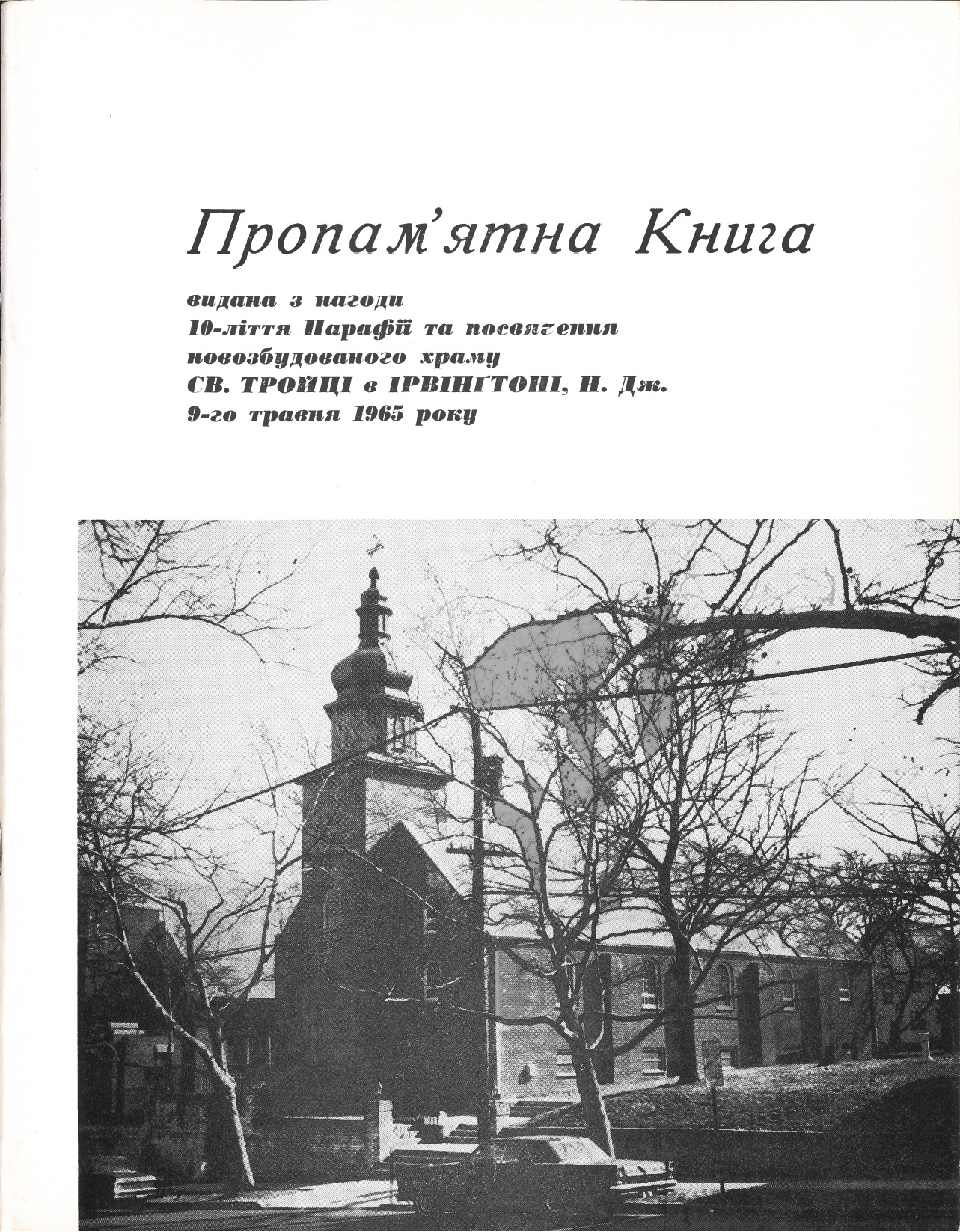 Пропам'ятна Книга видана з нагоди 10-ліття Парафії та посвячення новозбудованого храму Св. Тройці в Ірвінґтоні, Н. Дж. [Commemorative book published for the 10th anniversary of the parish and the consecration of the newly-built church of the Holy Trinity in Irvington, N. J.] Item Info